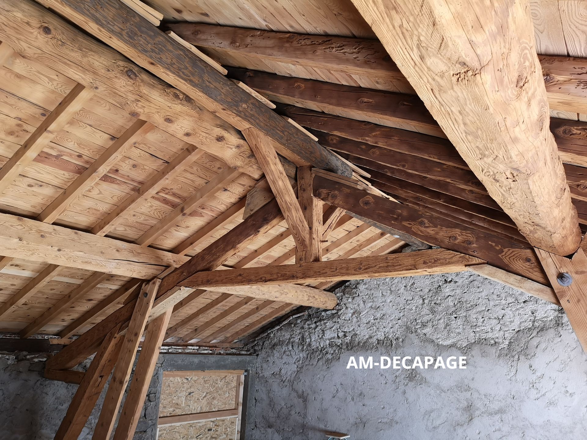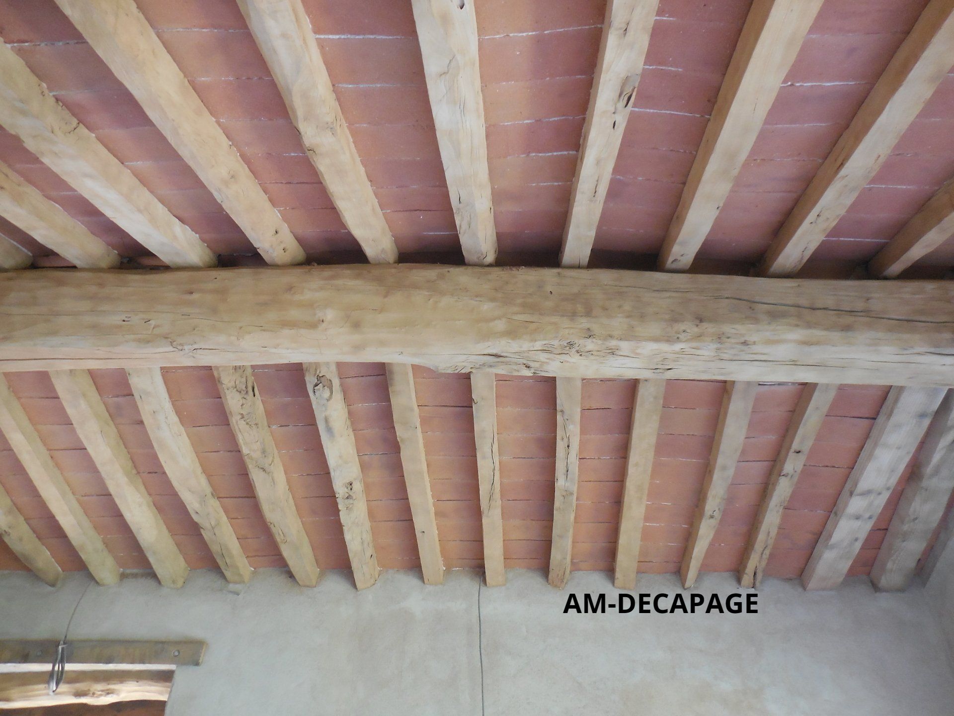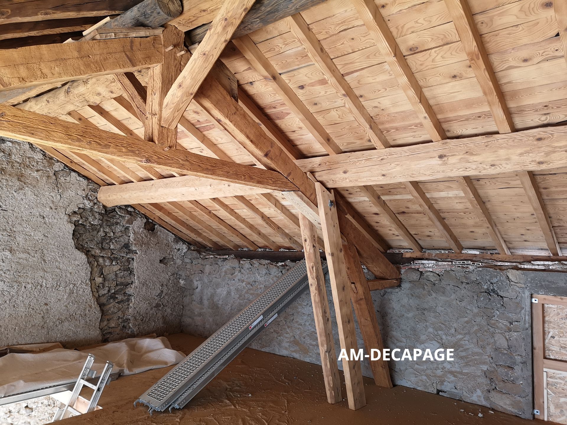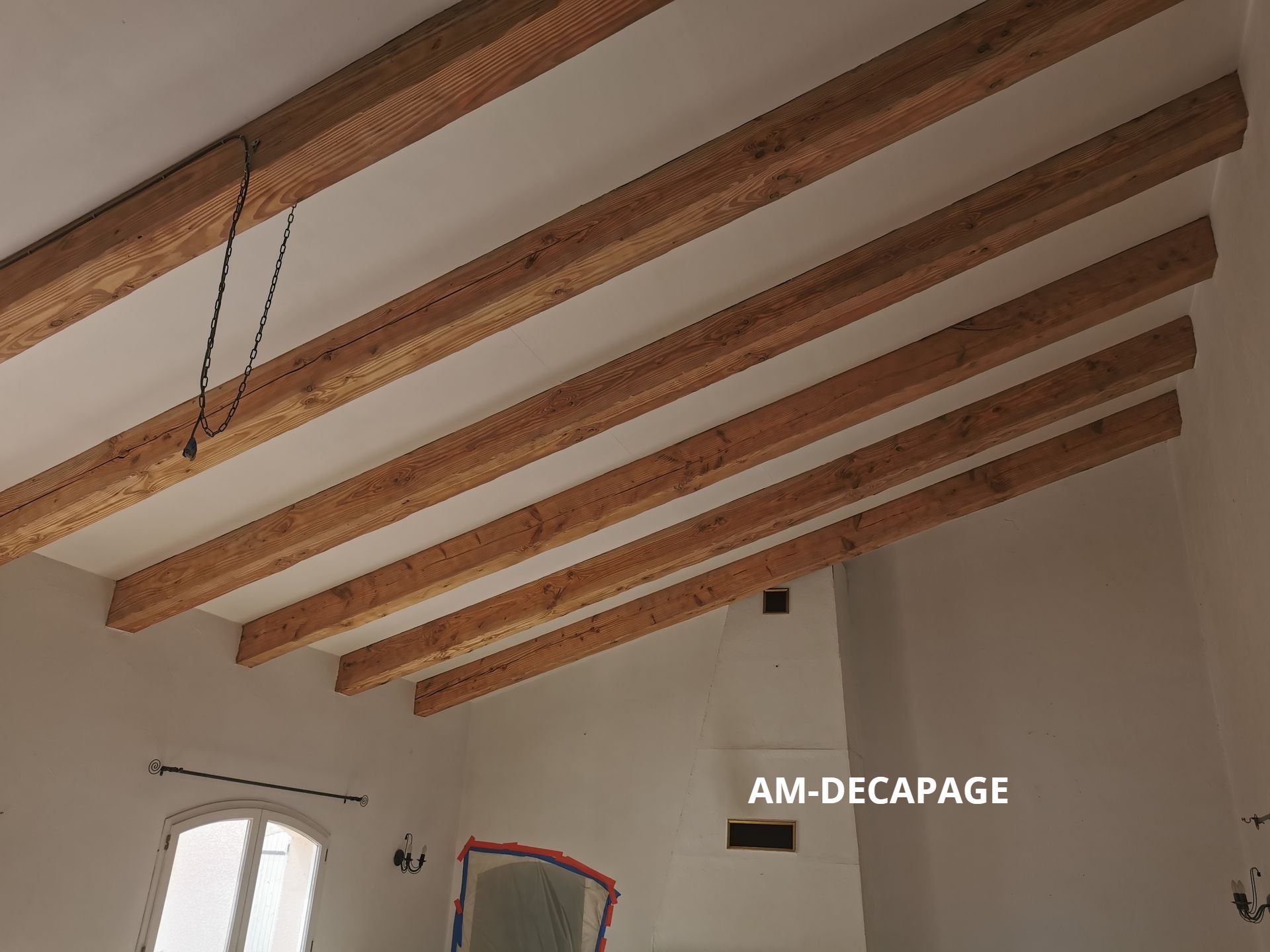 Vous avez des poutres ou une charpente traditionnelle en bois et vous souhaitez retrouver la couleur du bois naturel ou tout simplement rénover la surface pour peindre ou traiter la matière ?