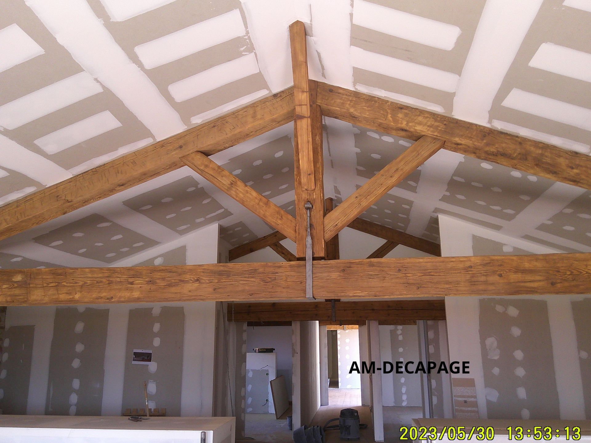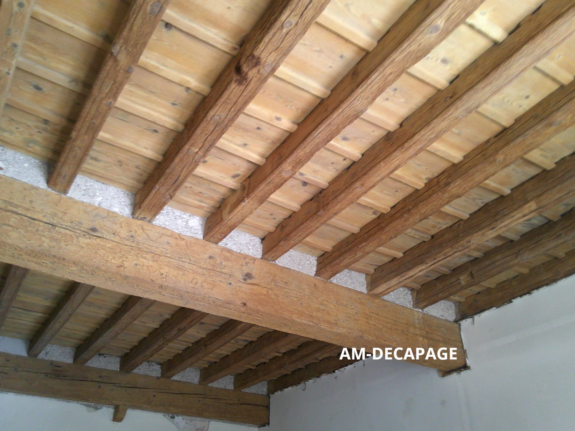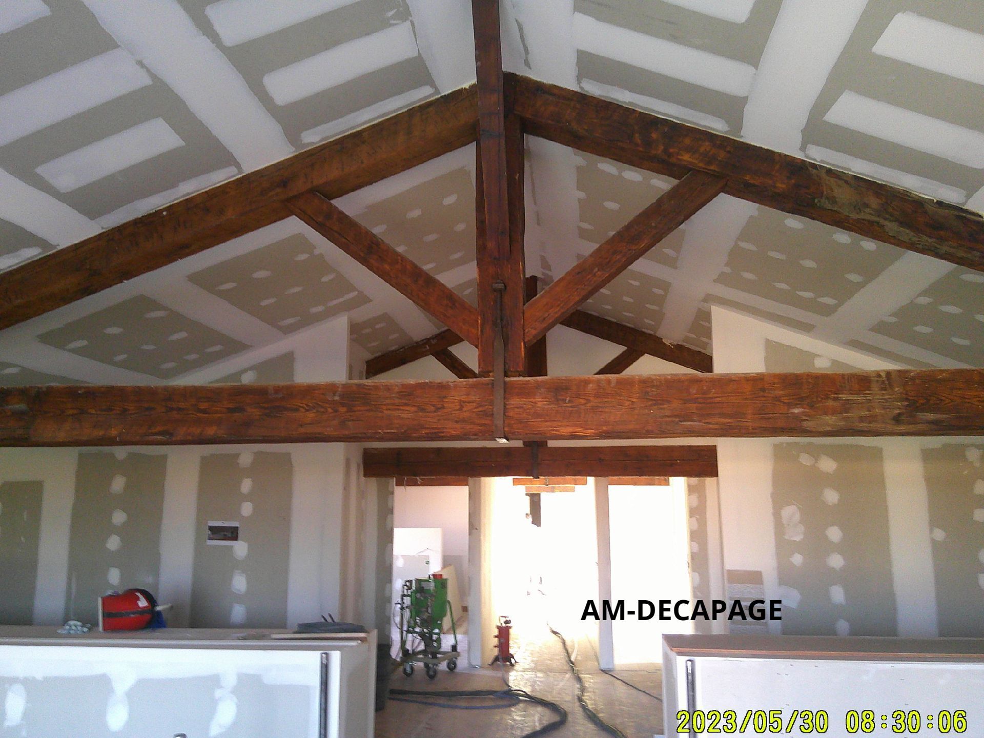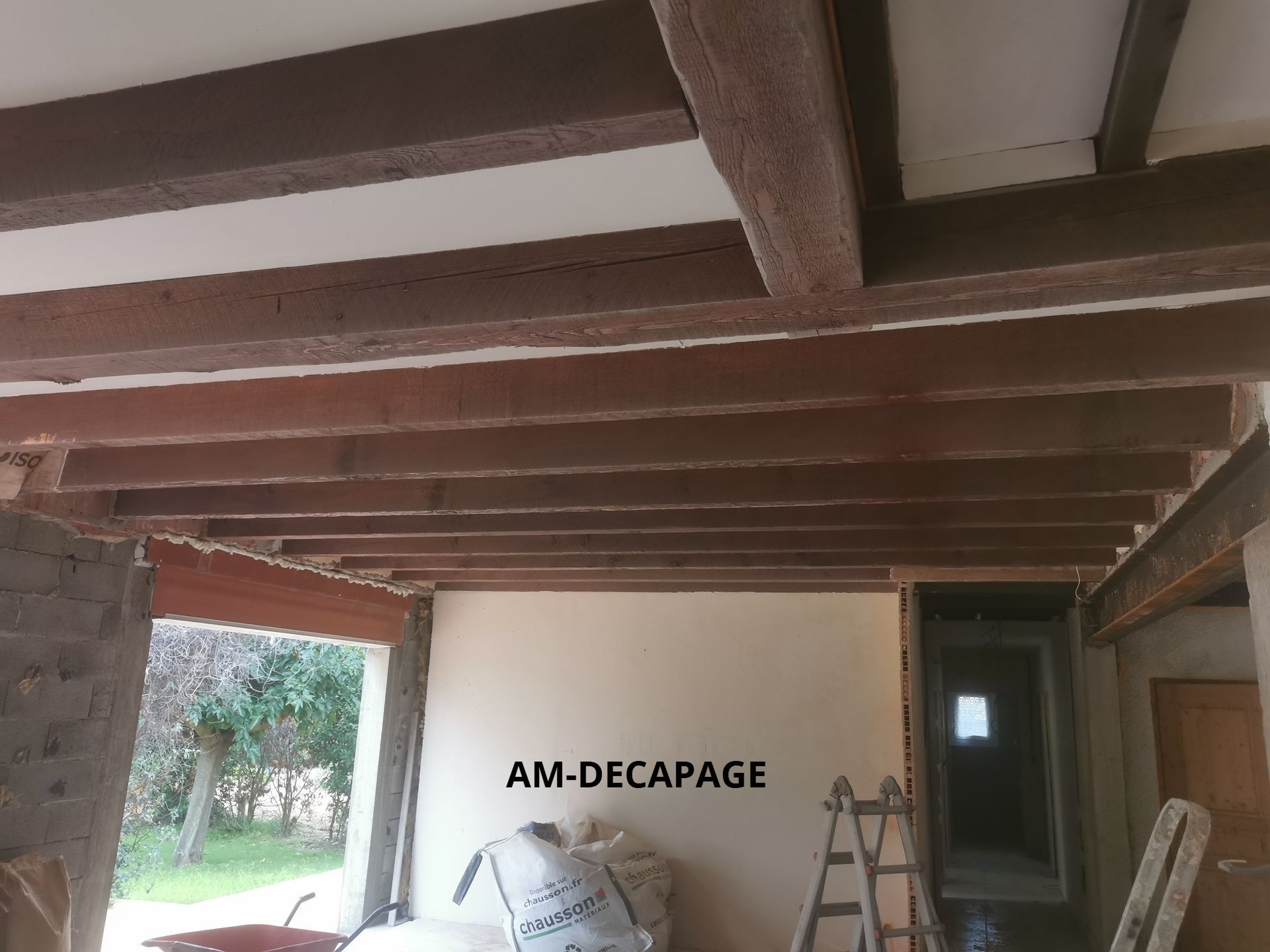 Vous avez des poutres ou une charpente traditionnelle en bois et vous souhaitez retrouver la couleur du bois naturel ou tout simplement rénover la surface pour peindre ou traiter la matière ?